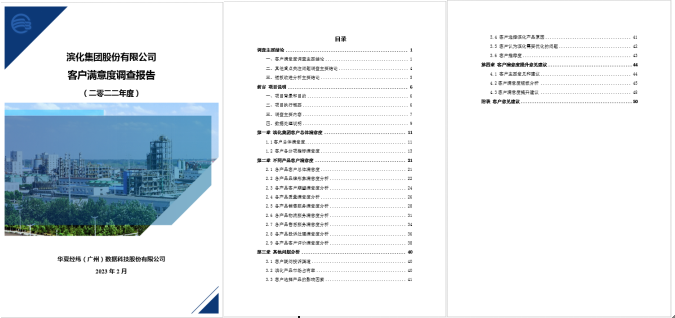 (2022年濱化集團股份有限公司客戶滿意度調(diào)查報告封面及目錄)